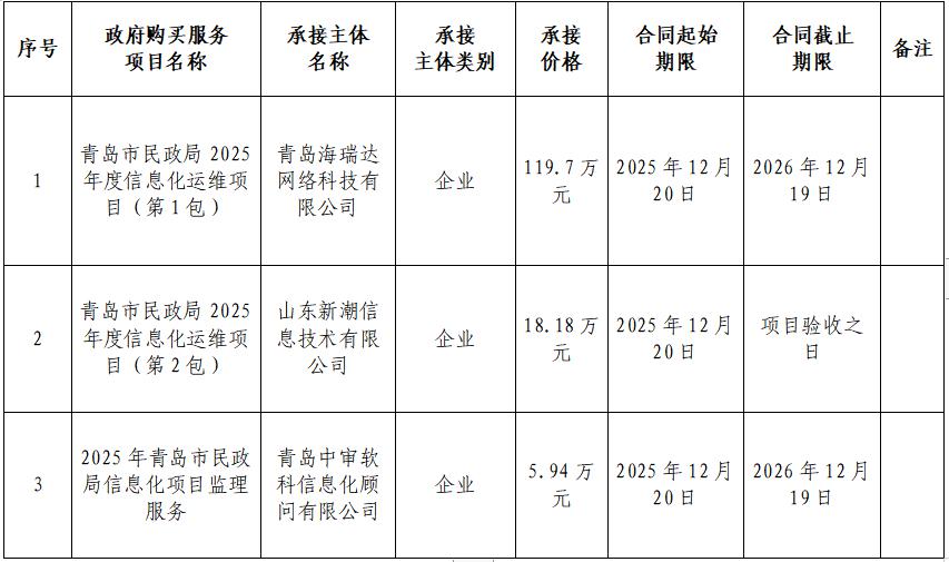 青島市民政局2025年度政府購買服務(wù)項(xiàng)目承接主體(政務(wù)信息化運(yùn)維項(xiàng)目)