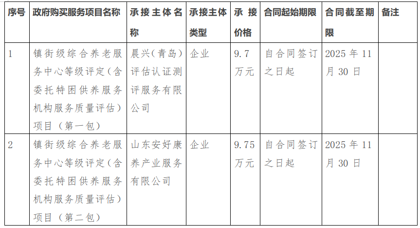 青島市民政局2025年政府購買服務(wù)項(xiàng)目承接主體(鎮(zhèn)街級綜合養(yǎng)老服務(wù)中心等級評定(含委托特困供養(yǎng)服務(wù)機(jī)構(gòu)服務(wù)質(zhì)量評估)