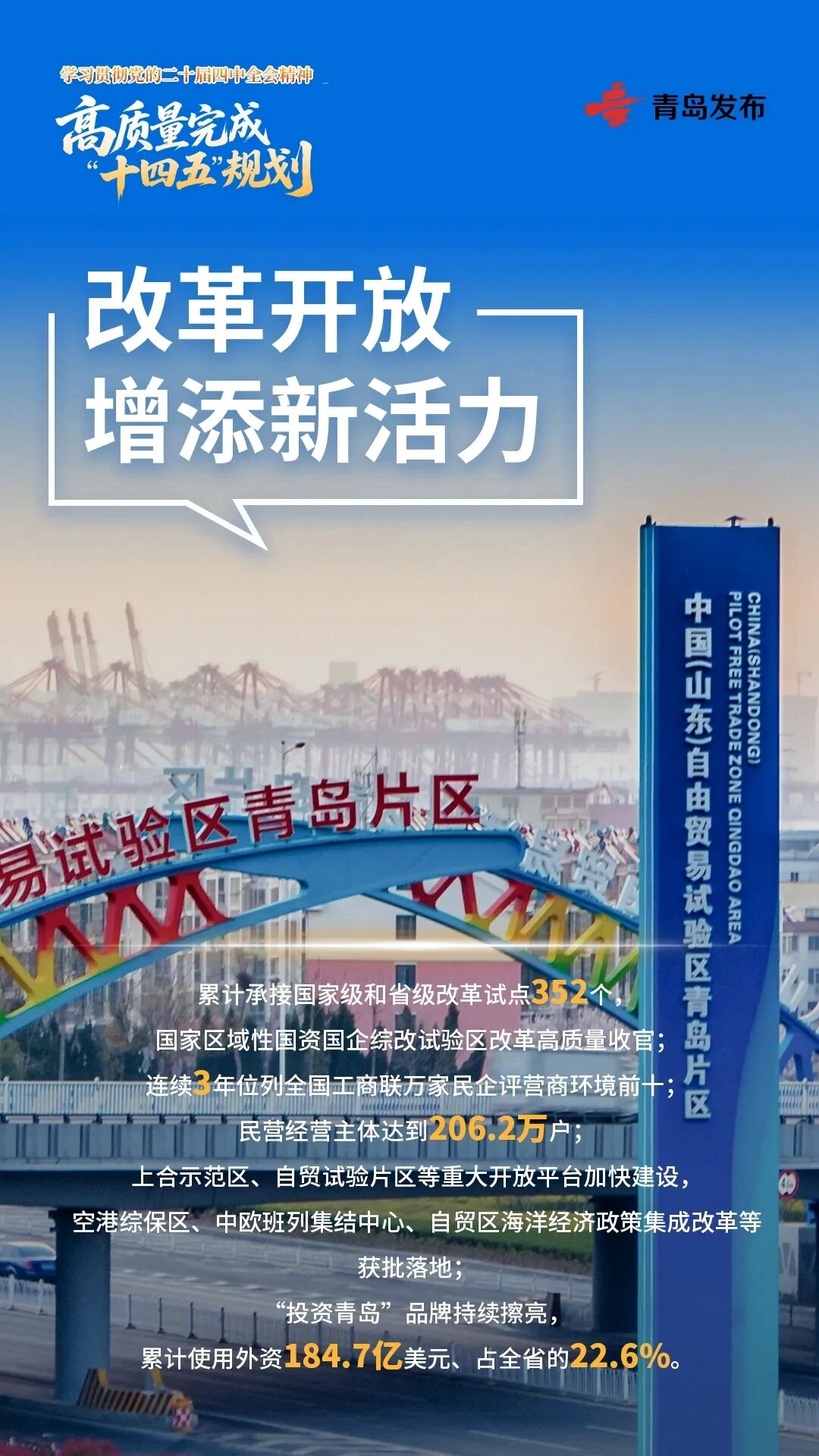 展望“十五五”,將深入學(xué)習(xí)貫徹黨的二十屆四中全會精神,科學(xué)謀劃青島“十五五”發(fā)展藍(lán)圖,不斷開創(chuàng)現(xiàn)代化國際大都市建設(shè)新局面,奮力譜寫中國式現(xiàn)代化青島實踐新篇章。