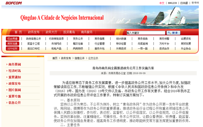 2016年,市商務(wù)局圍繞商務(wù)重點工作,深入貫徹落實《中華人民共和國政府信息公開條例》和國家、省、市有關(guān)規(guī)定,印發(fā)實施了《青島市商務(wù)局全面推進政務(wù)公開工作實施方案》,堅持以公開為常態(tài)、不公開為例外,推進政務(wù)運行全過程公開和重點領(lǐng)域信息公開,保障人民群眾知情權(quán)、參與權(quán)、表達權(quán)、監(jiān)督權(quán),以公開促落實,以公開促規(guī)范,以公開促服務(wù)。堅持改革創(chuàng)新,注重精細化、可操作性,務(wù)求公開實效,讓群眾看得到、聽得懂、能監(jiān)督,使政務(wù)公開在加強自身建設(shè)、提高商務(wù)工作透明度、推動職能轉(zhuǎn)變等方面發(fā)揮更加重要的作用。