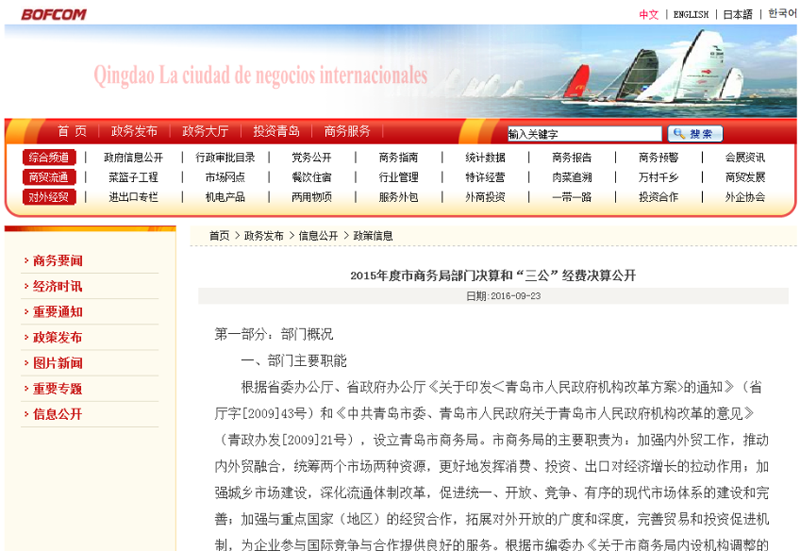 2.充分發(fā)揮報紙、廣播、電視、網(wǎng)絡(luò)等媒體作用,主動發(fā)布信息,使主流聲音和權(quán)威準(zhǔn)確的政務(wù)信息在網(wǎng)絡(luò)領(lǐng)域和公共信息傳播體系中廣泛傳播。重點圍繞國際貿(mào)易中心城市建設(shè),青島國際城市戰(zhàn)略、外貿(mào)進出口、利用外資與世界500強企業(yè)合作、“引進來”和“走出去”相結(jié)合、跨境電商等一系列活動,2016年全年各類媒體刊登商務(wù)工作信息1000余篇。