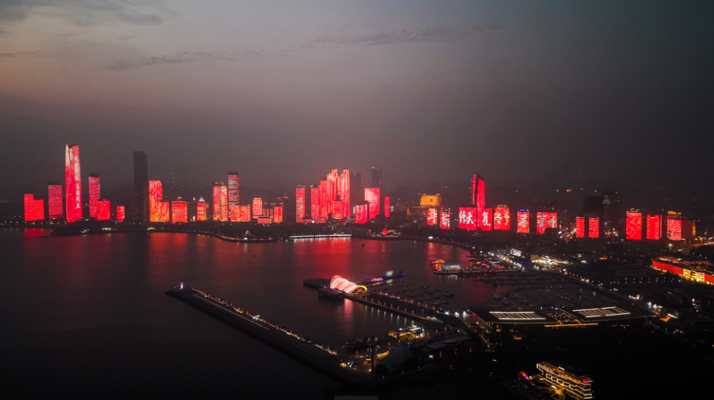 市南區(qū)持續(xù)激發(fā)消費潛力,開展“好品聚市南精彩消費年”等促消費活動,浮山灣燈光秀推出“大美中國”主題秀及中秋主題秀,與青島風(fēng)光主題等燈光秀編組播放,為市民游客營造濃厚的節(jié)慶氛圍?!按竺乐袊敝黝}燈光秀分四個篇章,以綠水青山為底色,伴隨紅綢絲帶飄動,一幕幕展現(xiàn)祖國的發(fā)展成就,傳遞大美中國的家國情懷。