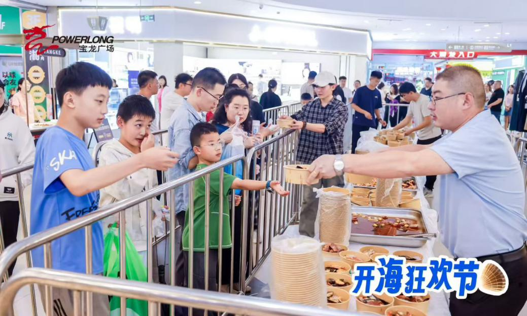 寶龍城市廣場以“開?!睘橹黝},現(xiàn)場設(shè)置霓裳飛天高空雜技秀、開海音樂會、海鮮大咖任性吃、剝蝦大賽等活動。