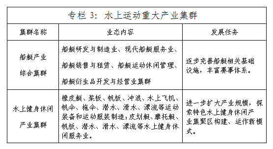 重點發(fā)展水上運動賽事表演、會展、休閑服務、制造、教育培訓等業(yè)態(tài),強化集聚效應,推動形成水上運動產(chǎn)業(yè)集群。
