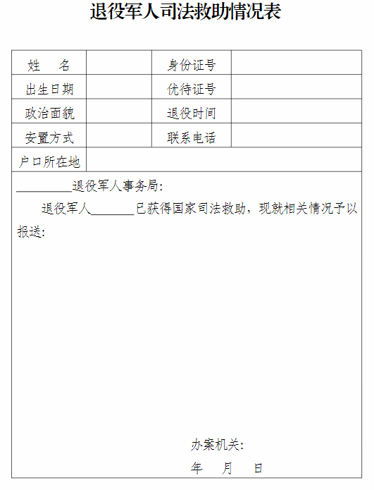? ? ? ? ? 2.退役軍人司法救助情況表