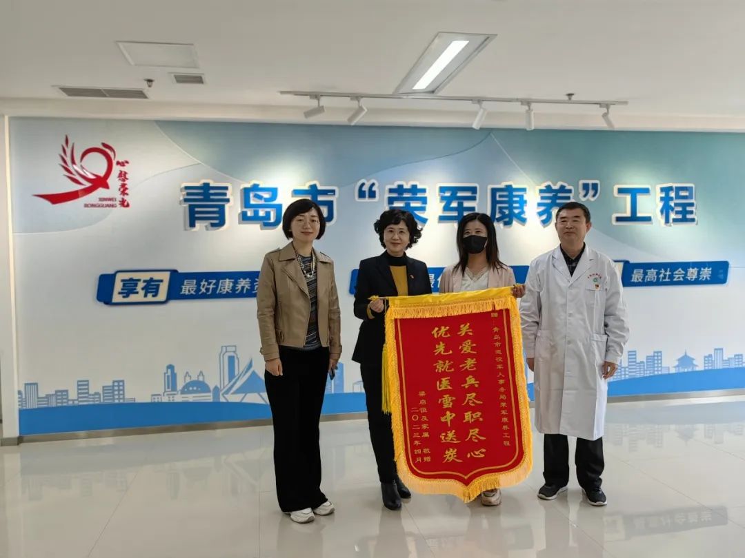 “‘榮軍康養(yǎng)’工程暖心服務(wù),幫助我們解決了大難題,非常感謝‘榮軍康養(yǎng)’工程辦公室領(lǐng)導(dǎo)和工作人員!”梁先生是一名帶病回鄉(xiāng)退役軍人,今年89歲,初步診斷肺炎、肺膿腫,4月初前往青島大學(xué)附屬醫(yī)院市南院區(qū)就診,因病情較重為讓老人能盡快住院治療,家屬撥打“榮軍康養(yǎng)”工程就醫(yī)服務(wù)電話(68721717),工作人員了解老人病情及需求后,積極對接青島大學(xué)附屬醫(yī)院,醫(yī)院克服困難緊急給梁老在急診安排了留觀加床,后續(xù)幫助老人轉(zhuǎn)入呼吸內(nèi)科病房接受治療。梁先生女兒為此特意來到“榮軍康養(yǎng)”工程辦公室贈(zèng)送錦旗,對“榮軍康養(yǎng)”工程辦公室就醫(yī)協(xié)調(diào)工作表達(dá)感激之情。
