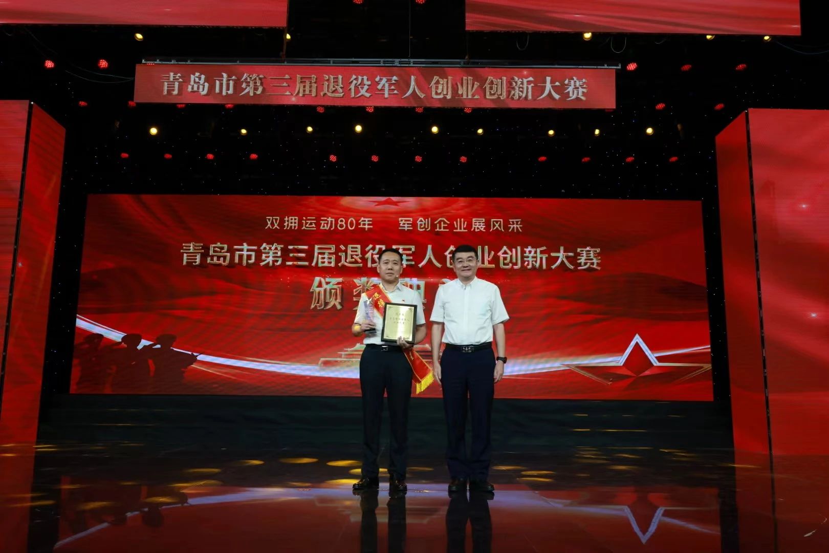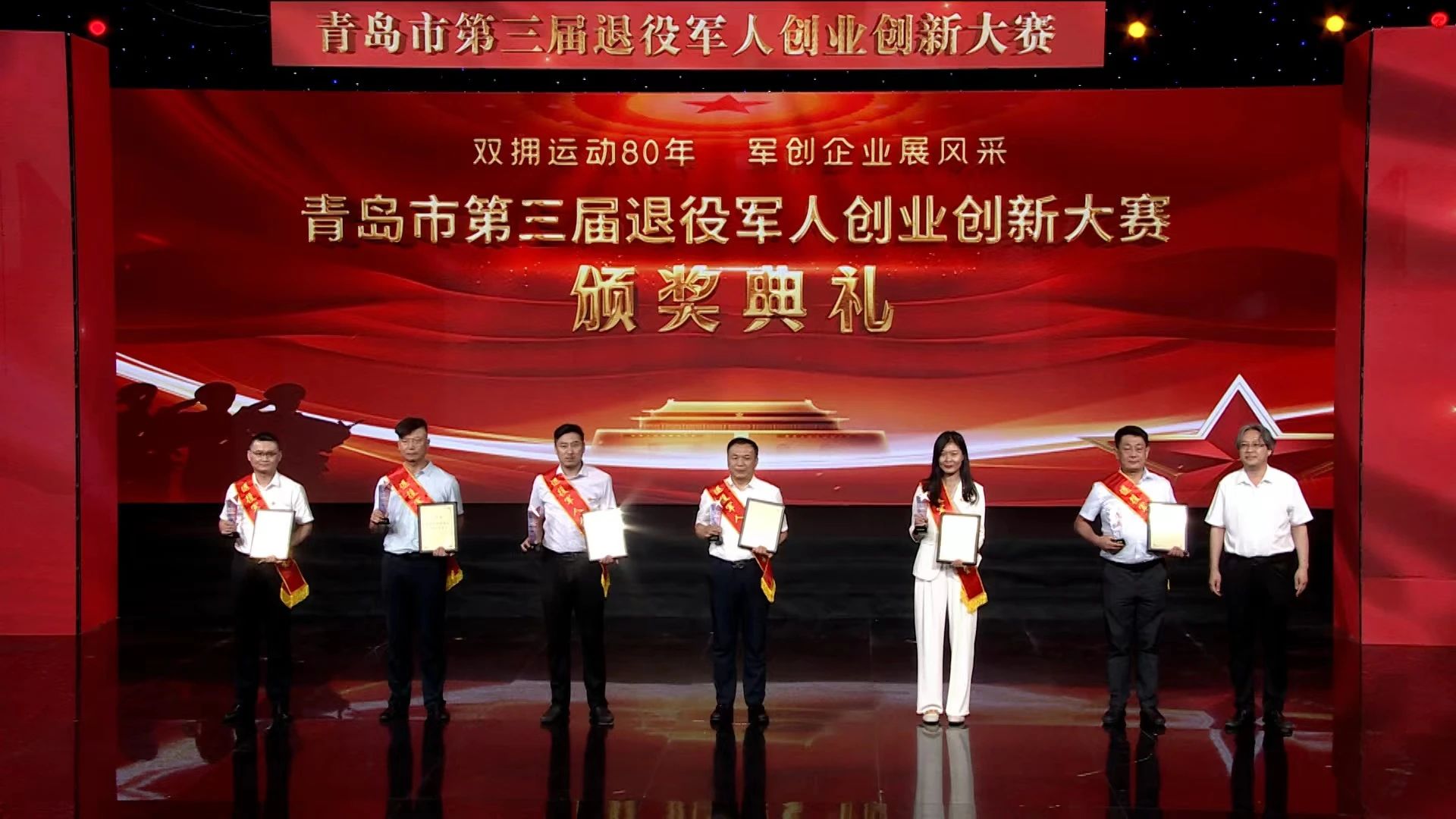 7月21日,青島市第三屆退役軍人創(chuàng)業(yè)創(chuàng)新大賽頒獎(jiǎng)典禮在青島市廣播電視臺(tái)800平米演播大廳隆重舉行。青島市退役軍人事務(wù)局、青島市財(cái)政局、青島市人力資源和社會(huì)保障局、青島市總工會(huì)等相關(guān)單位領(lǐng)導(dǎo)出席活動(dòng)。頒獎(jiǎng)典禮現(xiàn)場(chǎng)披紅掛彩、歡聲雷動(dòng)、座無(wú)虛席,備受期待的頒獎(jiǎng)儀式、精心編排的創(chuàng)業(yè)情景劇以及飽含激情的《軍創(chuàng)之歌》將整場(chǎng)活動(dòng)不斷推向高潮。
