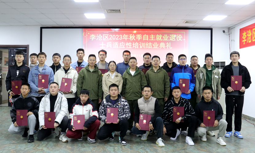 結(jié)業(yè)儀式上,全體奏唱國(guó)歌,李滄區(qū)退役軍人事務(wù)局有關(guān)負(fù)責(zé)同志宣讀了本屆優(yōu)秀班組和優(yōu)秀學(xué)員,軍創(chuàng)中心有關(guān)負(fù)責(zé)同志為優(yōu)秀學(xué)員們頒發(fā)了精美紀(jì)念品,學(xué)員代表孫鵬代表退役士兵進(jìn)行總結(jié)發(fā)言。在奏唱軍歌后,所有學(xué)員分組列隊(duì),依次上臺(tái)領(lǐng)取結(jié)業(yè)證書(shū)。最后,全體人員合影留念。