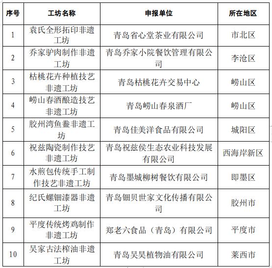 關(guān)于公布青島市第三批市級(jí)非遺工坊名單的通知
