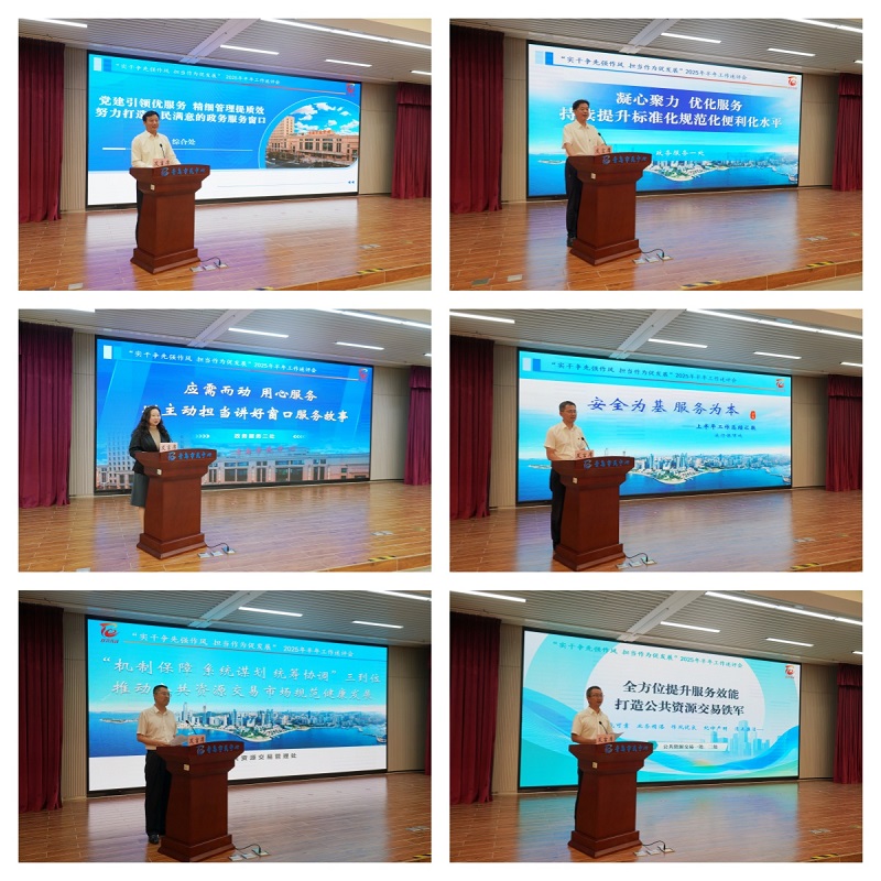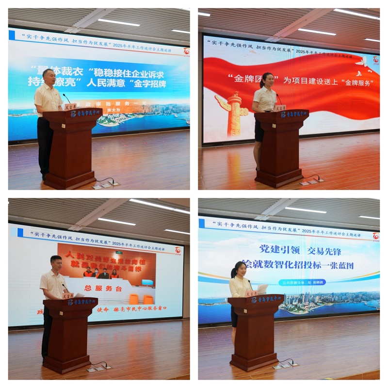 會上,局機關(guān)和中心各處室負責人逐一上臺做盤點、講不足、談打算,4名在營商環(huán)境一線的業(yè)務(wù)骨干分別圍繞持續(xù)擦亮全國“人民滿意的公務(wù)員”工作室招牌、“金牌團隊”的“金牌服務(wù)”、踐行市民中心“第一排面”使命、繪就數(shù)智化招投標一張藍圖等主題展開述講,談?wù)J識、亮做法、講收獲。