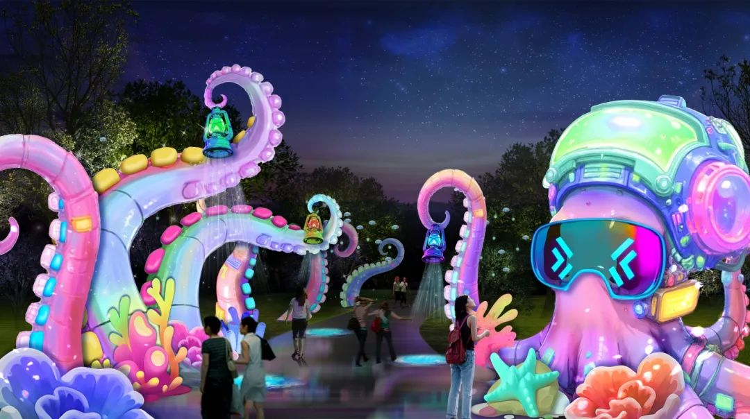 超30米長(zhǎng)巨型章魚、珊瑚藍(lán)水母等燈組,以超現(xiàn)實(shí)想象為筆,結(jié)合“呼吸式”光影變幻,呈現(xiàn)光影交織的深海幻境,帶來別樣消夏體驗(yàn)。