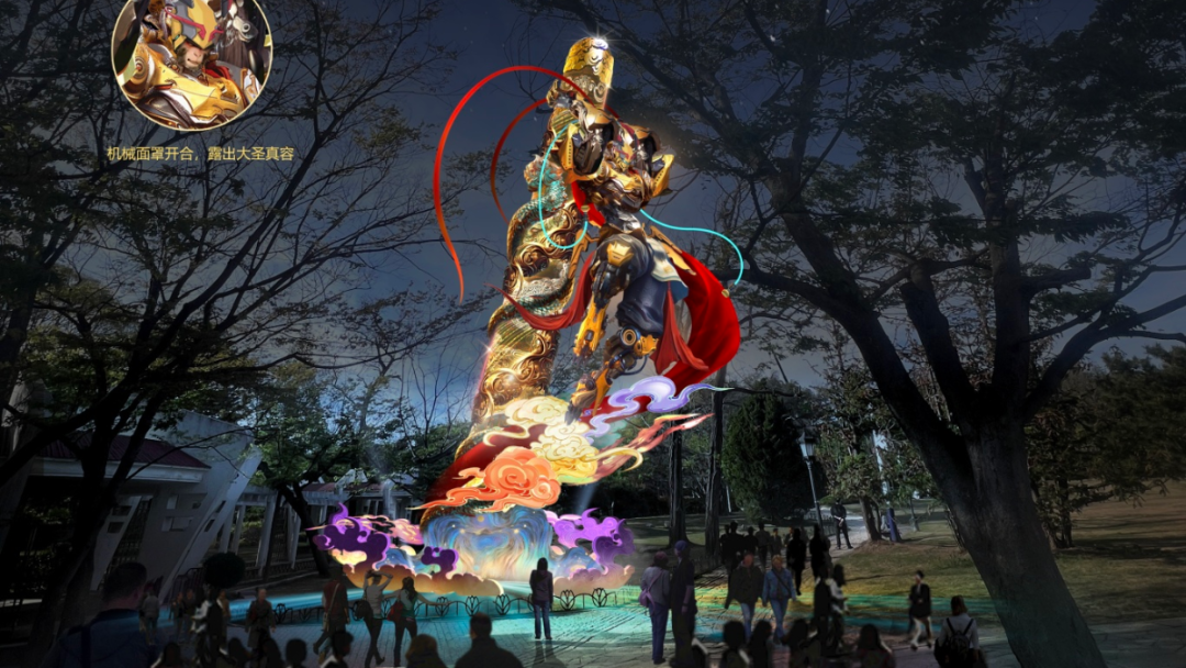 12米高機(jī)甲悟空以機(jī)械骨骼結(jié)構(gòu)融合非遺自貢彩燈技藝,打造最高動(dòng)態(tài)機(jī)甲燈組。
