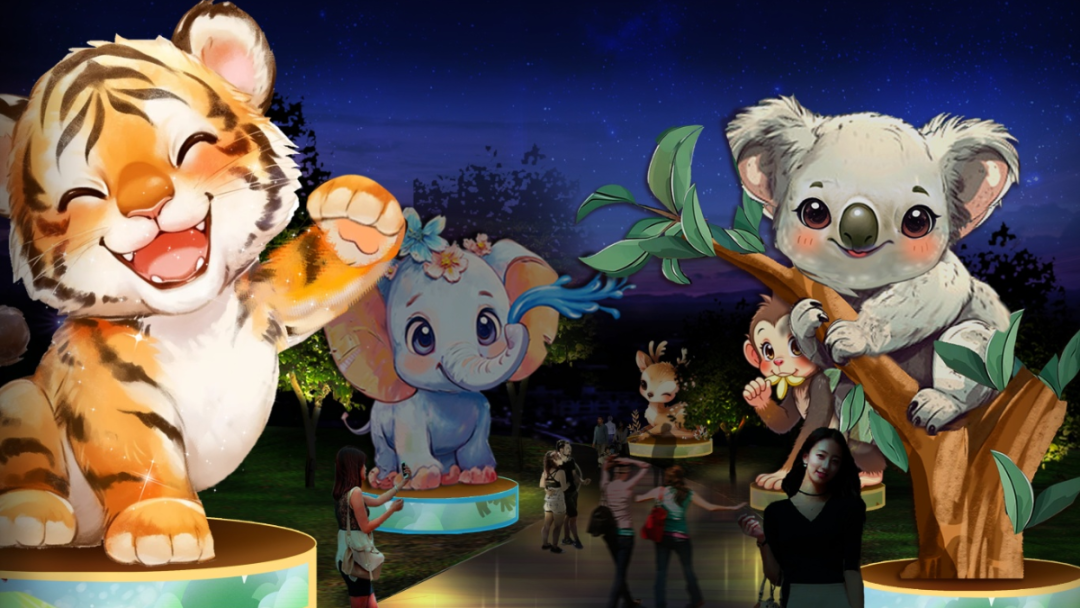 將孩子們天馬行空的畫作打造成立體燈組,與栩栩如生的動(dòng)物燈組交相輝映,每一盞燈都是一個(gè)童趣故事,每一處光影都是一次奇妙邂逅。