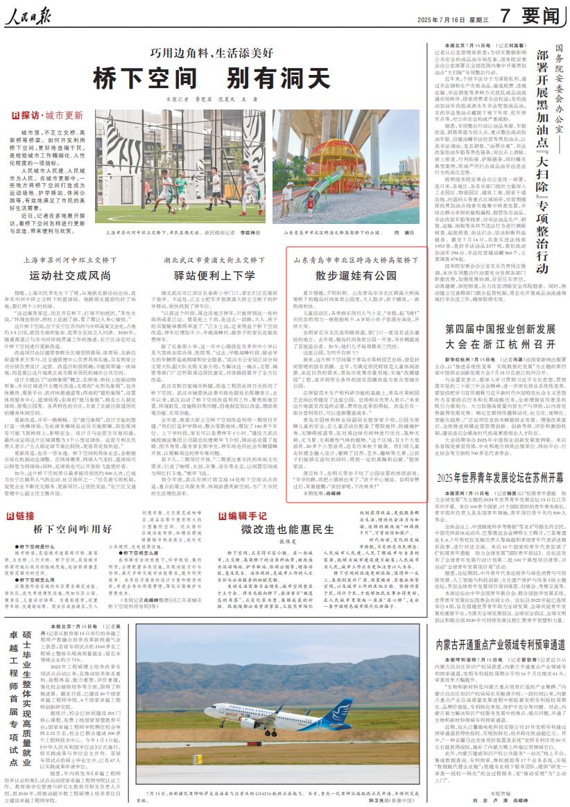 人民城市人民建、人民城市為人民。在城市更新中,一些地方將橋下空間打造成為運動場地、護學(xué)驛站、休閑公園等,有效地滿足了市民的美好生活需要。