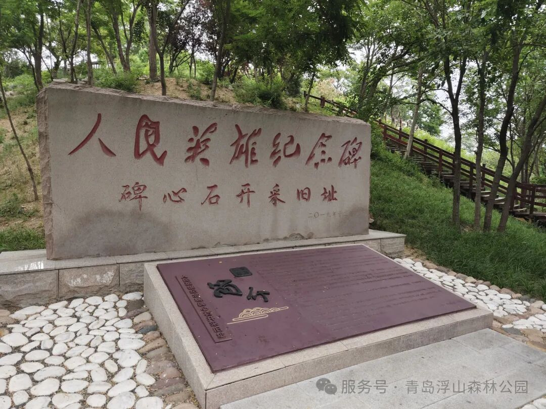 今天,人民英雄紀(jì)念碑碑心石位于浮山森林公園青大三路入口景觀綠化區(qū)域,全年免費(fèi)為市民開放。