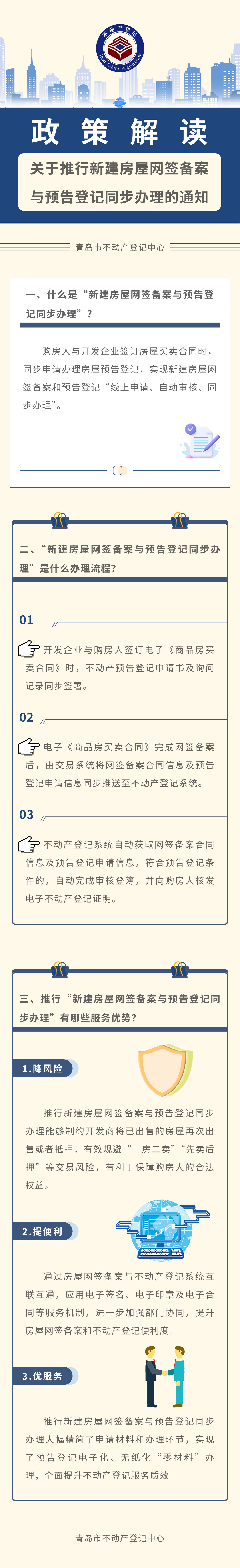 【圖文解讀】青島市自然資源和規(guī)劃局 青島市住房和城鄉(xiāng)建設(shè)局關(guān)于推行新建房屋網(wǎng)簽備案與預(yù)告登記同步辦理的通知