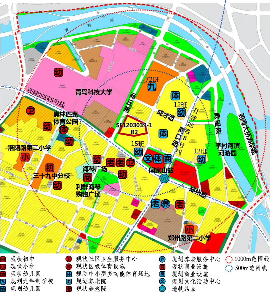 6.城市公園綠地:現(xiàn)狀周邊有海琴廣場,規(guī)劃周邊有李村河濱河游園。