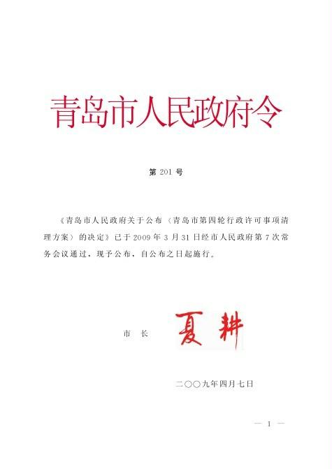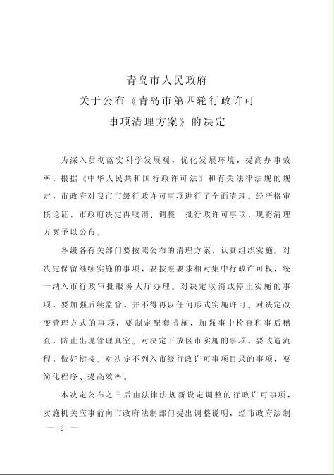 青島市第四輪行政許可事項(xiàng)清理方案(已廢止)