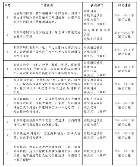 1.公共交通基礎(chǔ)設(shè)施建設(shè)。充分發(fā)揮軌道交通在城市公共交通中的骨干作用,帶動(dòng)公共交通相關(guān)產(chǎn)業(yè)發(fā)展;加大城市軌道交通在建項(xiàng)目管理,在確保工程質(zhì)量安全的前提下,加快建設(shè)地鐵3號(hào)線和地鐵2號(hào)線一期工程以及藍(lán)色硅谷城際軌道交通工程(R1),爭取盡早建成并投入運(yùn)營;加快推進(jìn)地鐵1號(hào)線、4號(hào)線、6號(hào)線及西海岸城際軌道交通工程(R3)工程前期工作,盡早開工建設(shè);結(jié)合青島新機(jī)場的規(guī)劃選址和建設(shè),適時(shí)開展地鐵8號(hào)線相關(guān)前期研究工作;加強(qiáng)城市各專項(xiàng)規(guī)劃間的協(xié)調(diào),逐步完善我市軌道交通線網(wǎng)用地控制規(guī)劃及交通銜接規(guī)劃,納入城市總體規(guī)劃及控制性詳規(guī),做好軌道交通建設(shè)用地預(yù)留及交通走廊的保護(hù)工作。積極發(fā)展以公共汽(電)車為主體的地面公共交通,合理規(guī)劃建設(shè)現(xiàn)代有軌電車等大容量地面公共交通系統(tǒng);推進(jìn)換乘樞紐、充換電站(樁)、加氣站、調(diào)度中心、保養(yǎng)場以及公交停車場等配套服務(wù)設(shè)施建設(shè),將其納入舊城改造和新城建設(shè)規(guī)劃同步實(shí)施;在城市公交、出租、公務(wù)、郵政、機(jī)場、旅游景區(qū)等領(lǐng)域推廣使用節(jié)能、新能源和清潔能源汽車,黨政機(jī)關(guān)率先更換電動(dòng)汽車和新能源汽車;推進(jìn)鞍山路、遼陽路、奮進(jìn)路等快速公交專用道的建設(shè)或研究,優(yōu)化香港路、山東路、中山路等既有公交專用道;推進(jìn)城鄉(xiāng)公交一體化進(jìn)程,實(shí)現(xiàn)農(nóng)村公交村村通。