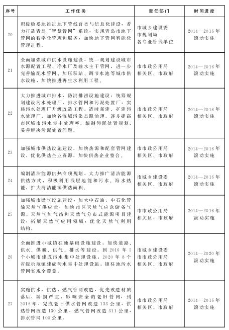 1.城市地下管網(wǎng)建設(shè)管理。建立健全地下管線管理地方法規(guī)及相關(guān)配套制度,積極穩(wěn)妥地推進(jìn)地下管線普查與信息化建設(shè)。以創(chuàng)建國家“智慧城市”技術(shù)和標(biāo)準(zhǔn)試點(diǎn)城市為契機(jī),著力打造青島“智慧管網(wǎng)”系統(tǒng),建成以管網(wǎng)信息為基礎(chǔ),以管線數(shù)據(jù)中心為核心,以行業(yè)用戶為節(jié)點(diǎn),包括地下管網(wǎng)信息采集、數(shù)據(jù)應(yīng)用服務(wù)為一體的綜合地理信息管理系統(tǒng),實(shí)現(xiàn)地下管網(wǎng)的數(shù)字化管理和服務(wù),加快地下管網(wǎng)的智能化管理進(jìn)程。統(tǒng)籌做好給水、排水、燃?xì)?、通信、電力、熱力、工業(yè)、綜合管溝等8大類36小類城市地下管線管理,徹底解決管理職能分散缺位、專業(yè)執(zhí)法缺失、綜合執(zhí)法弱化等問題,實(shí)現(xiàn)從建設(shè)計(jì)劃、項(xiàng)目審批、施工圖審查、質(zhì)量安全監(jiān)督、竣工驗(yàn)收備案、檔案信息歸集等全過程統(tǒng)一管理,消除地下管網(wǎng)安全隱患。建立健全管線信息資源互通共享機(jī)制,保證各行業(yè)用戶間信息資源互通共享。