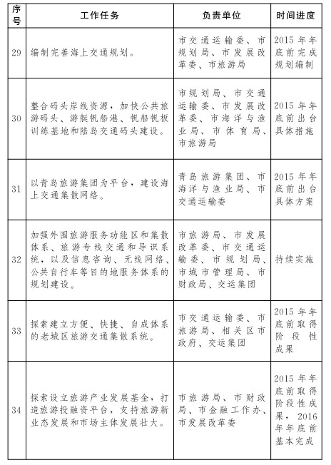 ?。ㄈ┘訌?qiáng)基礎(chǔ)設(shè)施建設(shè),完善旅游公共服務(wù)體系。依法落實(shí)差別化旅游業(yè)用地用海用島政策,優(yōu)先安排落實(shí)重點(diǎn)旅游項(xiàng)目用地和圍填海計(jì)劃指標(biāo)。編制完善海上交通規(guī)劃。整合碼頭岸線資源,加快公共旅游碼頭、游艇帆船港、帆船帆板訓(xùn)練基地和陸島交通碼頭建設(shè)。以青島旅游集團(tuán)為平臺,建設(shè)海上交通集散網(wǎng)絡(luò)。加強(qiáng)外圍旅游服務(wù)功能區(qū)和集散體系、旅游專線交通和導(dǎo)識系統(tǒng),以及信息咨詢、無線網(wǎng)絡(luò)、公共自行車等目的地服務(wù)體系的規(guī)劃建設(shè)。加強(qiáng)旅游廁所建設(shè)管理,實(shí)現(xiàn)數(shù)量充足、干凈無味、使用免費(fèi)、管理有序的要求。探索建立方便、快捷、自成體系的老城區(qū)旅游交通集散系統(tǒng),實(shí)現(xiàn)重點(diǎn)旅游景區(qū)、旅游線路的旅游咨詢服務(wù)全覆蓋。