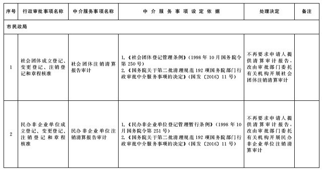 不再納入清單的行政審批中介服務(wù)事項目錄