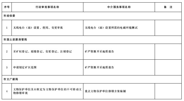 新納入清單的行政審批中介服務(wù)事項目錄