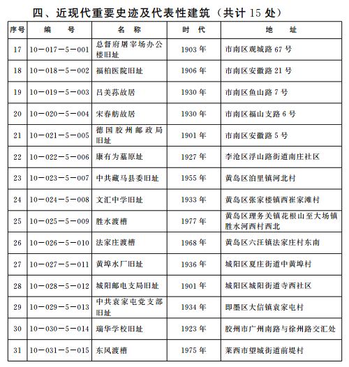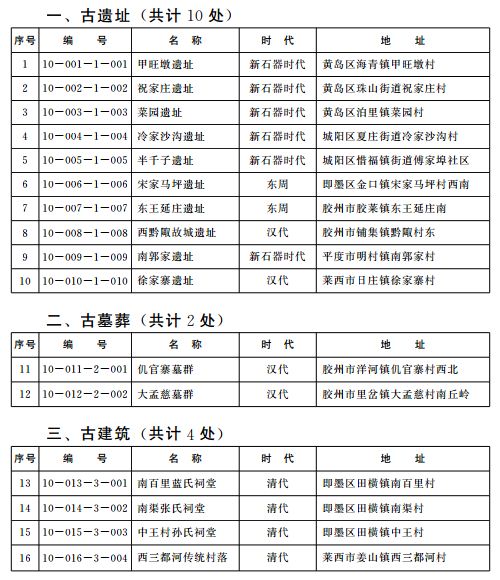 青島市第十批市級文物保護單位名單