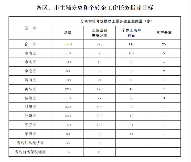 青島市企業(yè)主輔業(yè)分離和個(gè)體工商戶轉(zhuǎn)企工作推進(jìn)方案