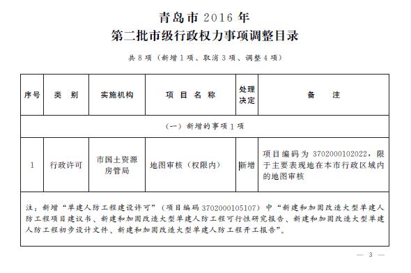 青島市2016年第二批市級(jí)行政權(quán)力事項(xiàng)調(diào)整目錄