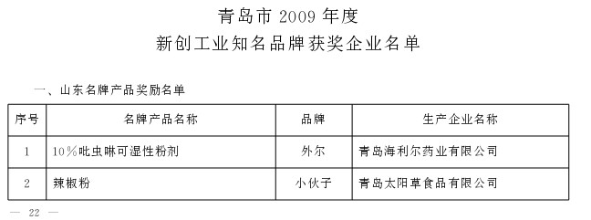 附件:青島市2009年度新創(chuàng)工業(yè)知名品牌獲獎企業(yè)名單