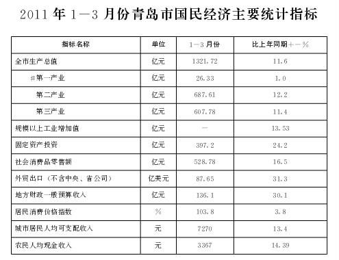 2011年1-3月份青島市國民經(jīng)濟主要統(tǒng)計指標(biāo)