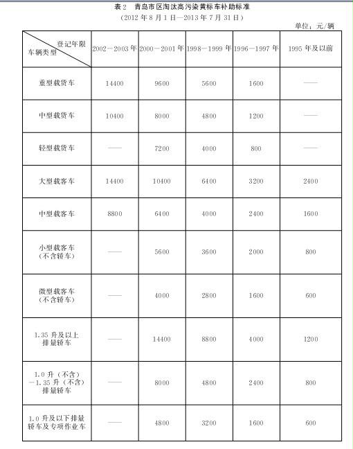 ?。ǘ?012年8月1日-2013年7月31日期間淘汰的,按照表2標(biāo)準(zhǔn)給予補(bǔ)助。