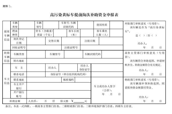 2.高污染黃標(biāo)車(chē)提前淘汰補(bǔ)助資金申報(bào)表