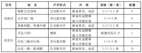 青島市戶外無償獻(xiàn)血公益宣傳廣告設(shè)置點(diǎn)