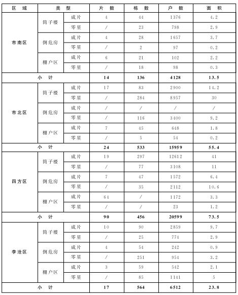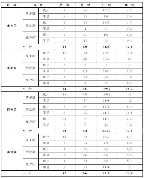 青島市主城區(qū)危舊房存量統(tǒng)計表