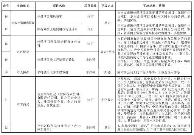 ?。ㄈ┳龊眯姓徟鷻?quán)限下放工作。對(duì)房地產(chǎn)開發(fā)企業(yè)參與建設(shè)的未申辦市級(jí)建設(shè)項(xiàng)目并聯(lián)審批的“兩改”、保障性住房、棚戶區(qū)改造、新型農(nóng)村社區(qū)、人才公寓項(xiàng)目的選址、規(guī)劃條件變更、開工驗(yàn)線、用地預(yù)審等審批事項(xiàng),下放到區(qū)、市分局或直屬機(jī)構(gòu)辦理;對(duì)房地產(chǎn)開發(fā)企業(yè)投資項(xiàng)目備案、施工許可、竣工驗(yàn)收、質(zhì)監(jiān)安監(jiān)登記等審批事項(xiàng),按照《青島市人民政府關(guān)于下放行政審批事項(xiàng)的決定》(市政府令第223號(hào))規(guī)定執(zhí)行,簽署委托協(xié)議,明確權(quán)利義務(wù);對(duì)結(jié)合民用建筑修建的防空地下室,其平時(shí)使用證核發(fā)、登記等事項(xiàng),下放到區(qū)、市人防主管部門。行政審批權(quán)限下放后,市級(jí)審批機(jī)關(guān)要對(duì)其審批條件、申報(bào)材料、申報(bào)程序、辦理期限統(tǒng)一梳理明確并公布執(zhí)行。各區(qū)、市相關(guān)部門要做好相關(guān)行政審批下放事項(xiàng)的承接工作,根據(jù)各自實(shí)際自行制定內(nèi)部工作程序和監(jiān)督制約機(jī)制,不得擅自增加審批環(huán)節(jié)、增設(shè)審批條件,不得將備案作為審批進(jìn)行管理。同時(shí)積極推行綠色通道、集中辦理、聯(lián)合辦理和并聯(lián)審批等措施,確保下放的審批事項(xiàng)運(yùn)行正常。