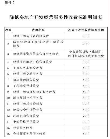 2???? 降低房地產(chǎn)開發(fā)經(jīng)營(yíng)服務(wù)性收費(fèi)標(biāo)準(zhǔn)明細(xì)表
