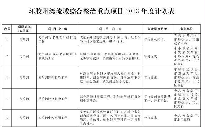 責(zé)任部門:李滄區(qū)政府、城陽區(qū)政府,青島水務(wù)集團(tuán),市市政公用局、市環(huán)保局