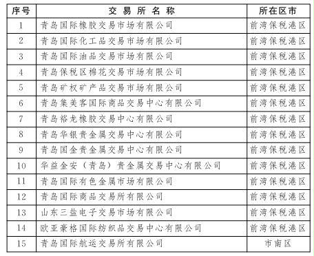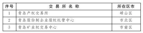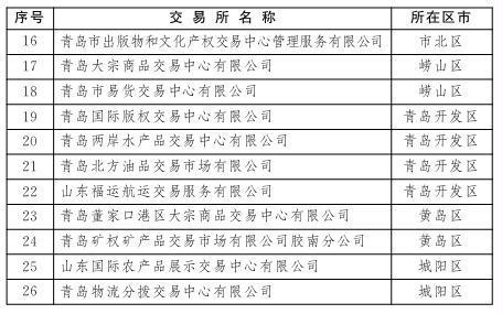 為規(guī)范發(fā)展各類交易場所,切實防范金融風險,更好地服務實體經(jīng)濟,根據(jù)《國務院關于清理整頓各類交易場所切實防范金融風險的決定》(國發(fā)〔2011〕38號)和《國務院辦公廳關于清理整頓各類交易場所的實施意見》(國辦發(fā)〔2012〕37號)等文件精神,經(jīng)清理規(guī)范,并通過清理整頓各類交易場所部際聯(lián)席會議檢查驗收,市政府同意保留青島產(chǎn)權交易所等29家交易場所(名單附后),現(xiàn)予公布。